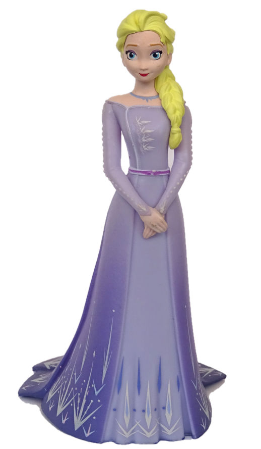 - Elegantes Design: Elsa trägt ihr prachtvolles lila Kleid, das mit filigranen Mustern und schimmernden Akzenten verziert ist, was ihre Entwicklung und ihren Mut in Frozen 2 widerspiegelt.