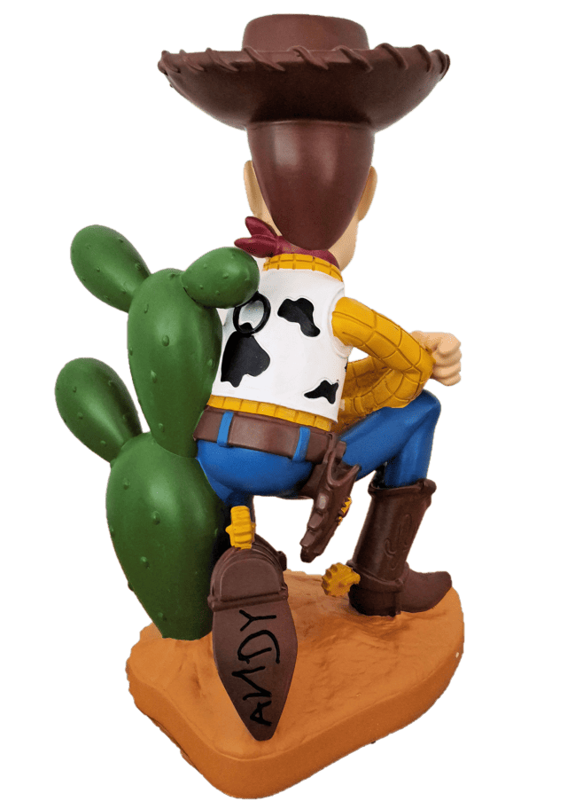 Diese detailreich gestaltete Disney-Figur zeigt Sheriff Woody in einer entspannten Pose: Locker in der Hocke sitzend, lehnt er sich mit einem breiten Lächeln vor einem Kaktus zurück – ganz so, als würde er gerade eine kleine Pause vom Abenteuer machen. Die ca. 40 cm große Figur ist aus hochwertigem Resin gefertigt und sorgfältig von Hand bemalt. Mit ihren leuchtenden Farben und dem charmanten Ausdruck fängt sie den unverwechselbaren Charakter von Woody perfekt ein. Ob im Kinderzimmer, auf dem Sammlerregal oder als originelle Geschenkidee für echte Toy-Story-Fans – diese Figur bringt ein Stück Pixar-Magie in jedes Zuhause.