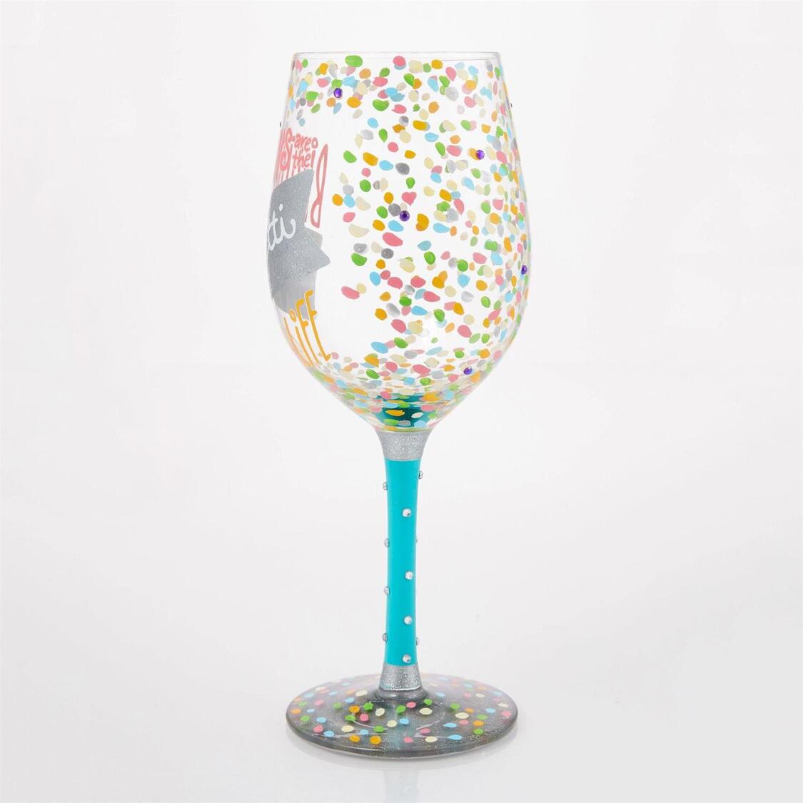 Feiern Sie stilvoll mit diesem funkelnden Lolita Weinglas, das mit buntem Konfetti und glitzernden Edelsteinen verziert ist. Mit der herzlichen Botschaft „Birthdays are the confetti of life“ wird dieses handbemalte Glas zu einem festlichen Hoch auf das Leben und verwandelt jeden Schluck in einen besonderen Moment.