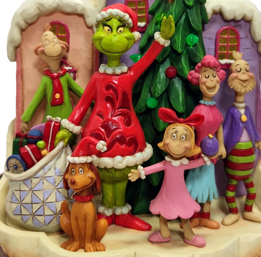 - Grinch, Max, Cindy Lou & Whoville in einer festlichen Szenerie.