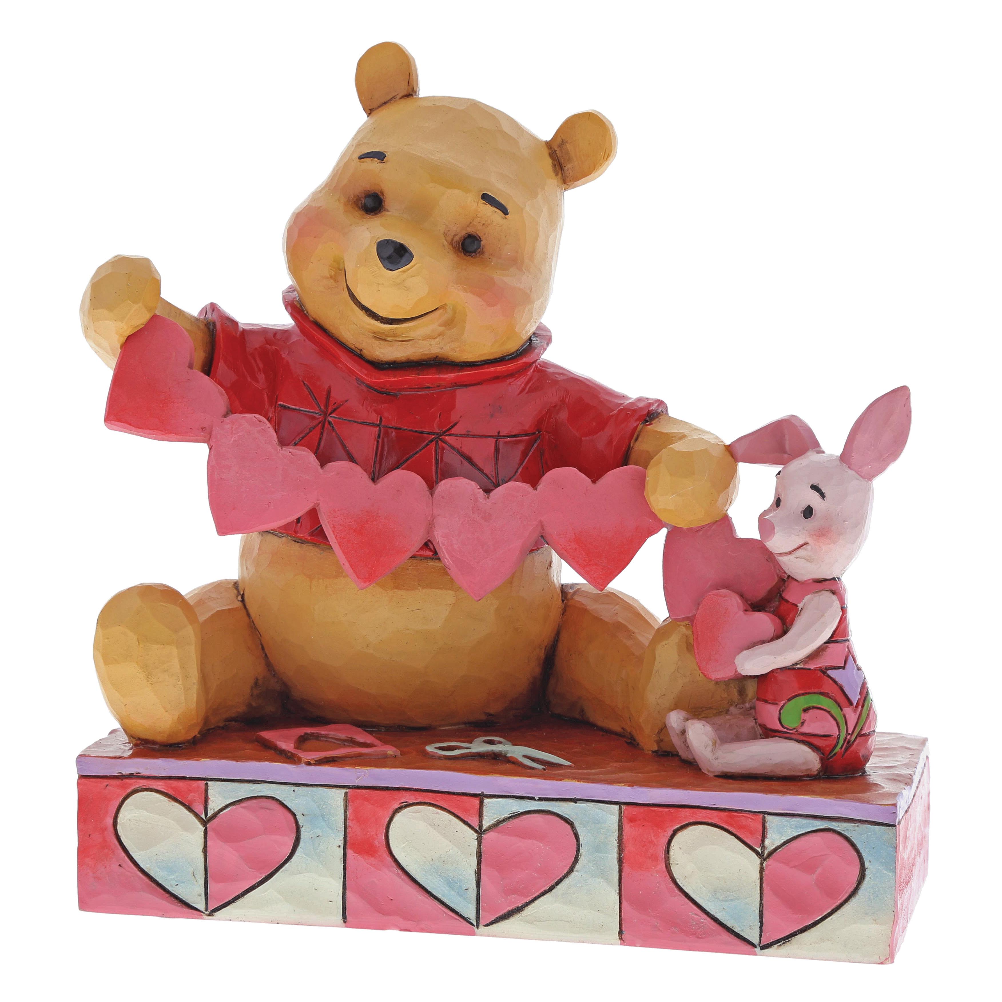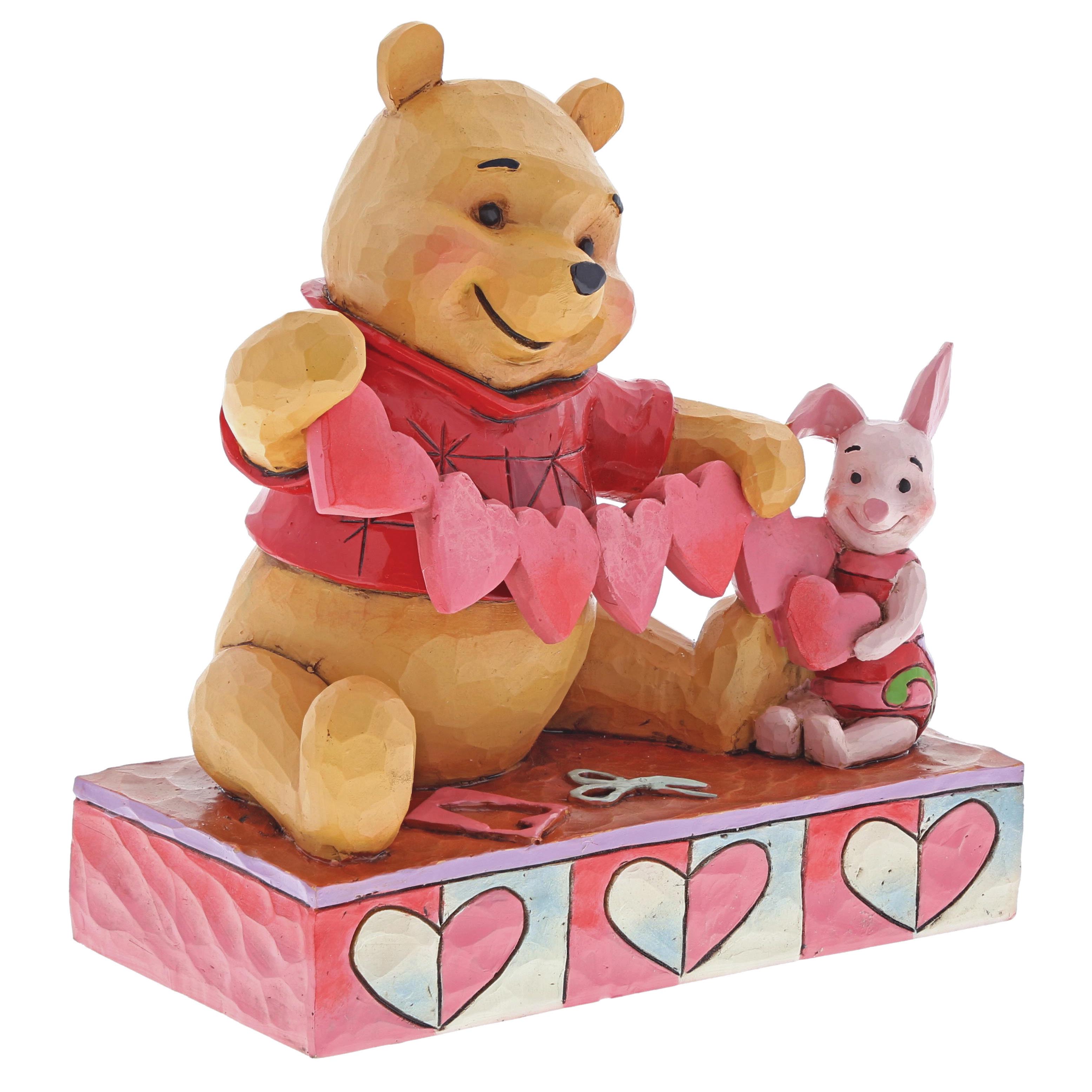In dieser liebevollen Szene aus der Disney Traditions Kollektion von Jim Shore sehen wir Piglet und Pooh, wie sie dicht beieinander sitzen und gemeinsam die handgemachte Herz-Girlande auseinanderziehen. Ihre enge Freundschaft und die süße Geste spiegeln die wahre Bedeutung von Liebe und Zusammenhalt wider.