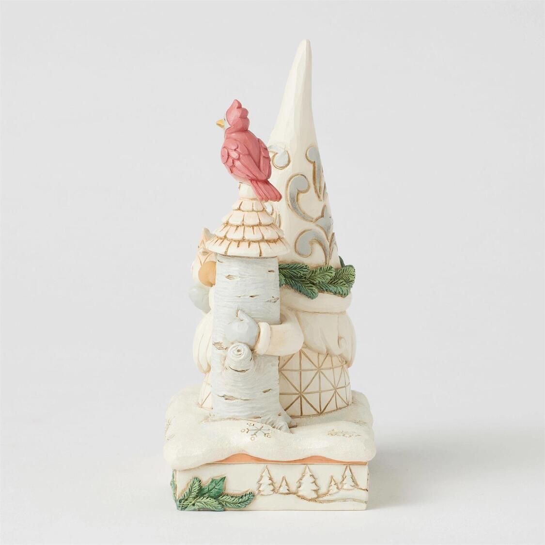 - Jim Shore Heartwood Creek „Holiday Guests“ White Woodland Kollektion, Gnome mit Vogelhaus und Vögeln