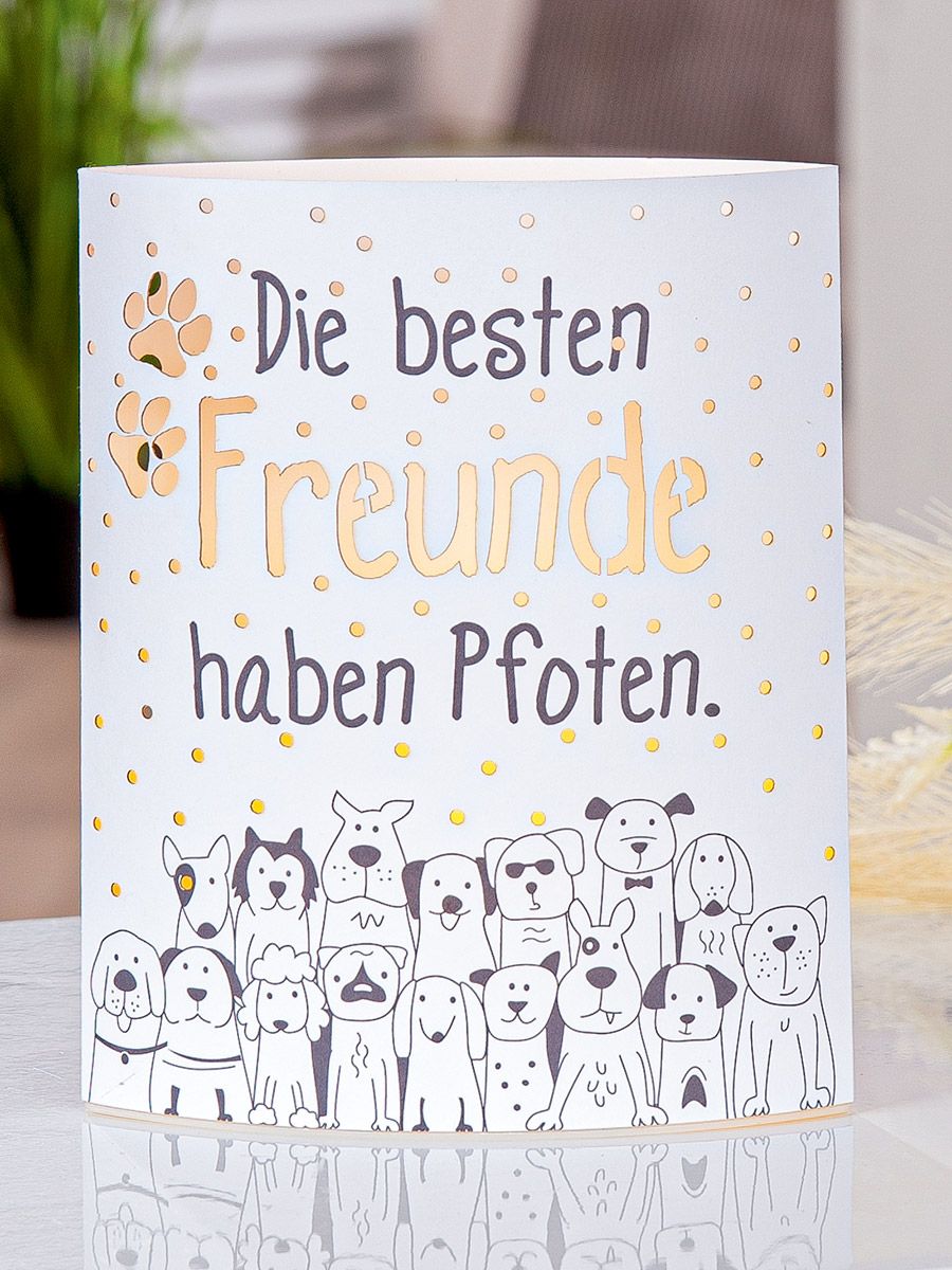 Produktinformationen "Hundebande - Dekolampe / 55713 Gilde LED Stimmungslicht Windlicht Hundebande / Die besten Freunde haben Pfoten Lampe Hundemotiv"