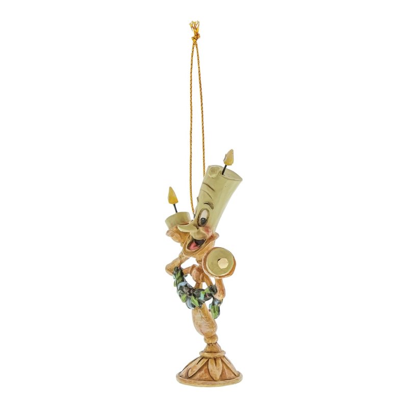 Feiern Sie die bezaubernde Welt von Walt Disney mit diesem wunderschönen saisonalen Ornament von Lumière aus dem klassischen Film Die Schöne und das Biest. Entworfen vom preisgekrönten Künstler und Bildhauer Jim Shore für die Marke Disney Traditions, zeigt dieses Ornament den charmanten Kerzenleuchter Lumière, der eine festliche Weihnachtsgirlande zwischen seinen Kerzenhaltern hält.