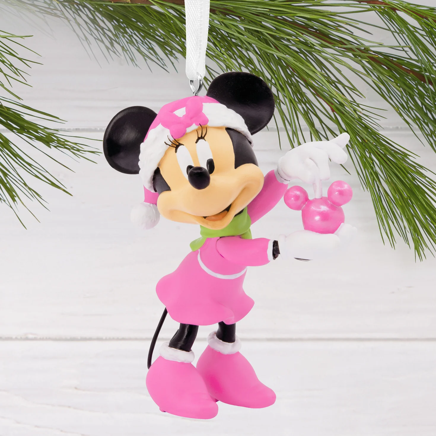 • Minnie Mouse hält eine festliche Weihnachtskugel – perfekt für die festliche Saison