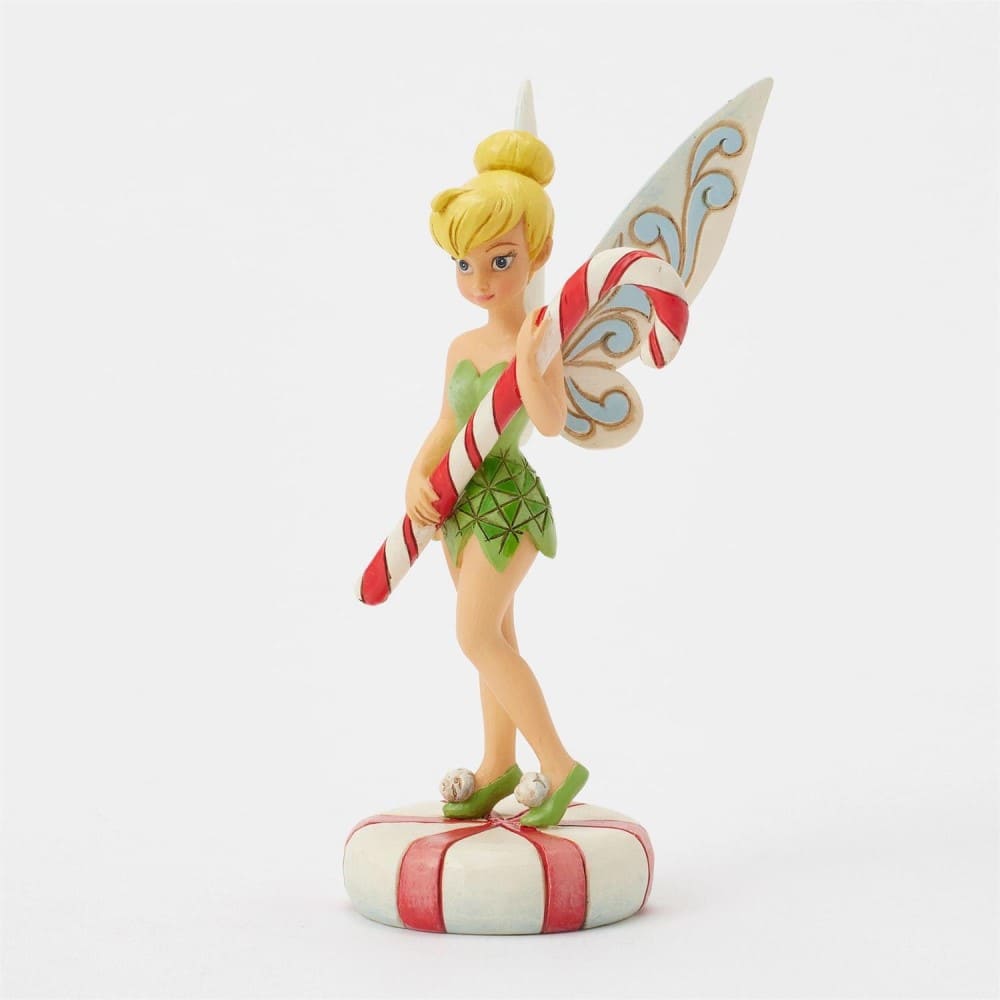 In diesem bezaubernden Design von Jim Shore steht Tinkerbell auf einem Pfefferminzbonbon und hält vorsichtig eine Zuckerstange, während sie mit einem süßen Lächeln festliche Wärme ausstrahlt. Ihre zauberhafte Präsenz bringt einen Hauch von Feenstaub und Magie in die Weihnachtszeit, und ihre natürliche Eleganz fügt sich perfekt in die festliche Atmosphäre ein.