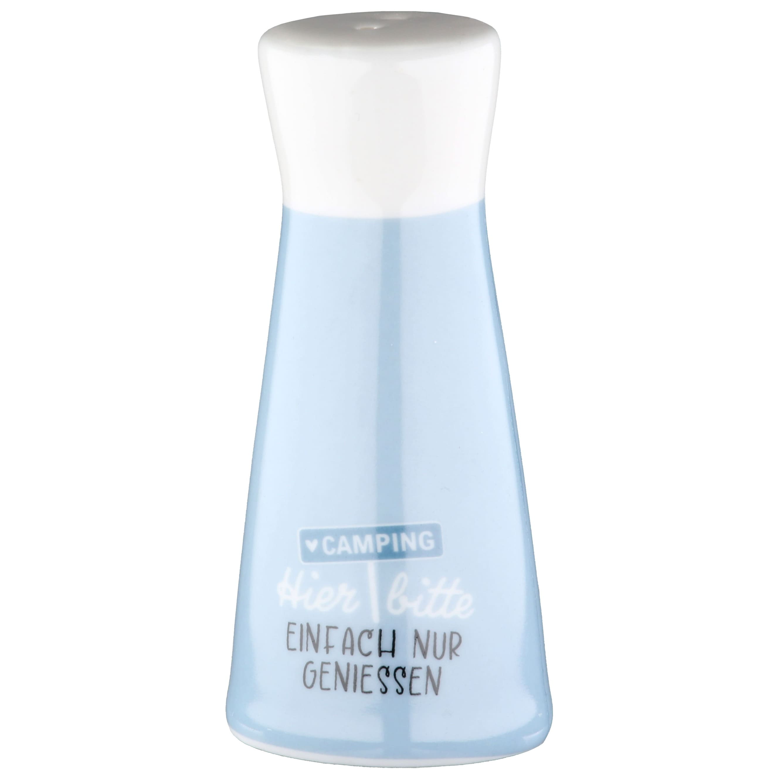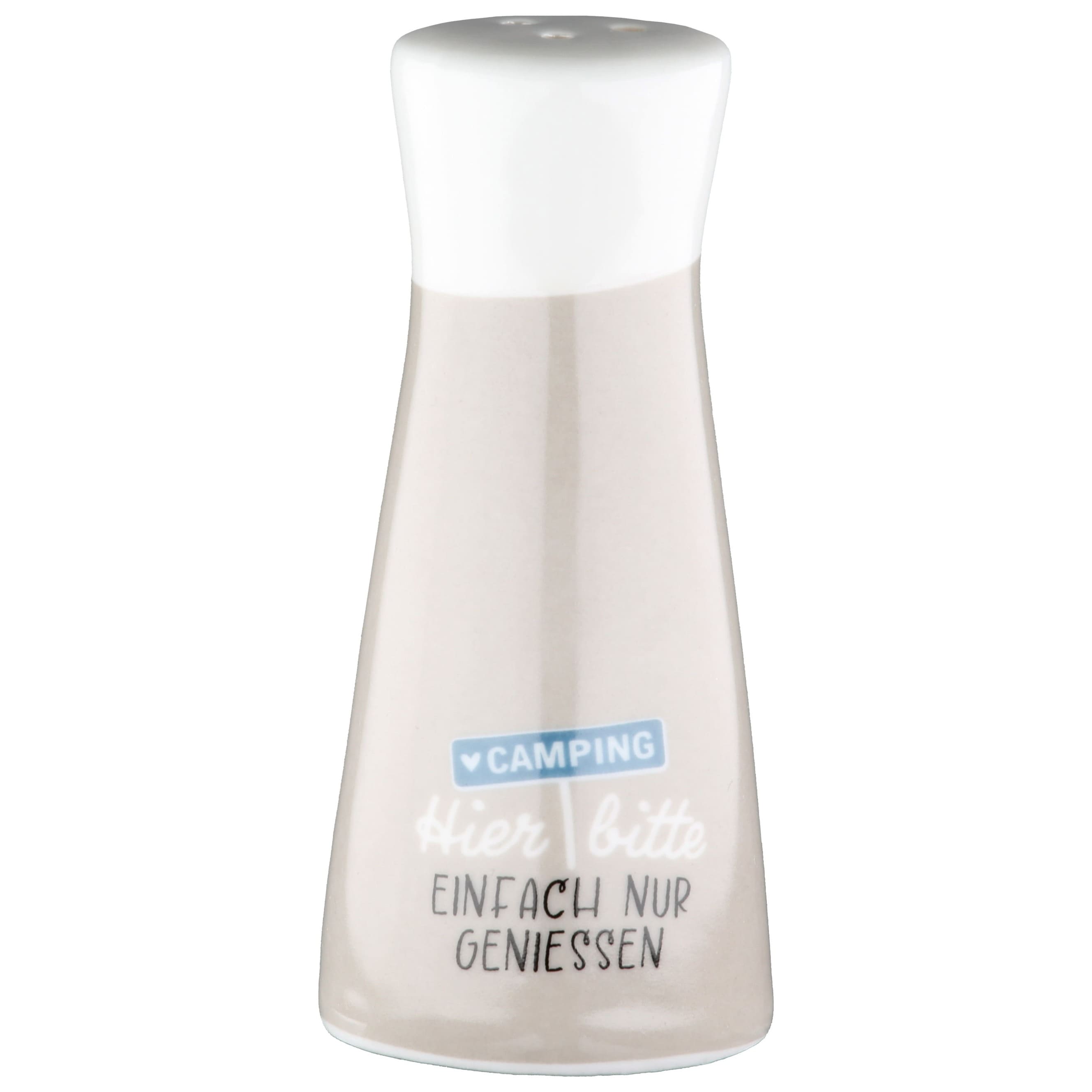 Das Salz- und Pfefferstreuer-Set „Camping – Hier bitte einfach nur genießen“ ist die perfekte Ergänzung für deinen Camping-Esstisch. Der eine Streuer in Hellblau und der andere in Beige tragen den weißen Schriftzug „Hier bitte einfach nur genießen“ und ein liebevoll gestaltetes Schild mit dem Wort „Camping“ und einem Herz. Die Kombination aus den beruhigenden Farben und dem charmanten Design sorgt für eine entspannte Atmosphäre und macht jedes Essen zu einem besonderen Erlebnis. Hergestellt aus robustem, glasiertem Porzellan sind die Streuer sowohl langlebig als auch pflegeleicht. Sie passen perfekt zu anderen Camping-Accessoires und eignen sich hervorragend für den Einsatz beim Camping, auf dem Balkon oder bei einem gemütlichen Picknick. Diese Streuer sind nicht nur funktional, sondern auch eine süße Geschenkidee für Campingfreunde und Outdoor-Liebhaber.