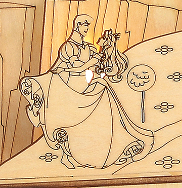 • Design: Aurora und Philip tanzen unterhalb des strahlenden Schlosses, das die zauberhafte Märchenwelt von Dornröschen widerspiegelt