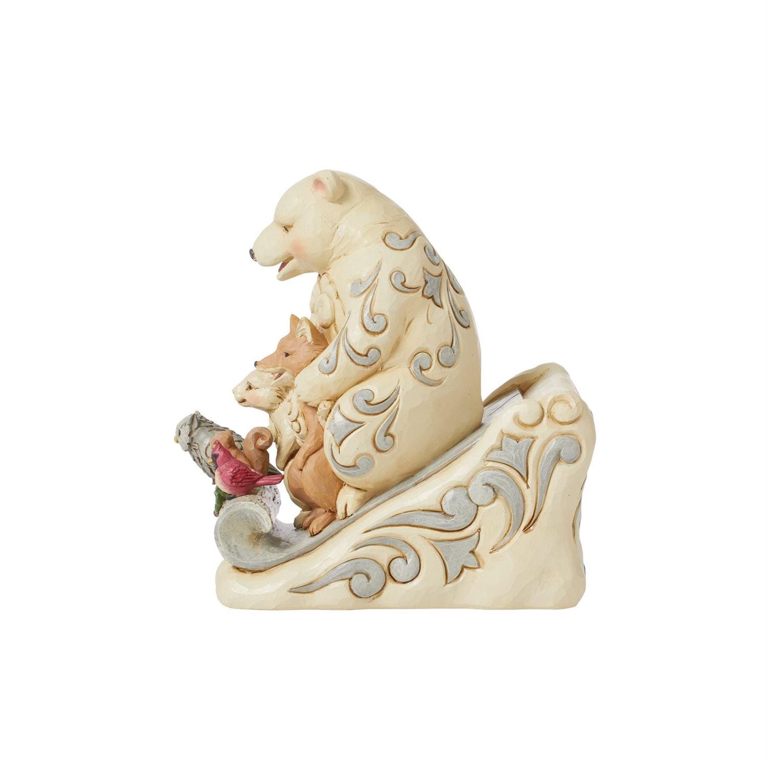 Erleben Sie den Zauber des Winters mit dieser bezaubernden Jim Shore-Figur, inspiriert vom Wald. Eine Gruppe von weißen Woodland-Tieren – ein Eisbär, ein Fuchs, ein Kaninchen, eine Eule, ein Kardinal und ein Eichhörnchen – teilt sich einen Rodelschlitten und genießt eine fröhliche Fahrt im Schnee. Diese charmante Szene fängt die Wärme und Freude der Wintermonate ein, besonders wenn man sie mit Freunden verbringt.