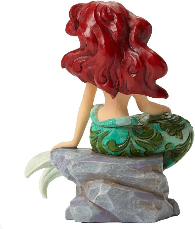 Arielle, die verträumte Meerjungfrau, sitzt in ihrer klassischen Pose auf einem Felsen und sehnt sich danach, ein echter Mensch zu sein. Entworfen von dem preisgekrönten Künstler Jim Shore, gibt sie ihr Debüt als Teil der Personality Pose-Reihe der Disney Traditions Kollektion.