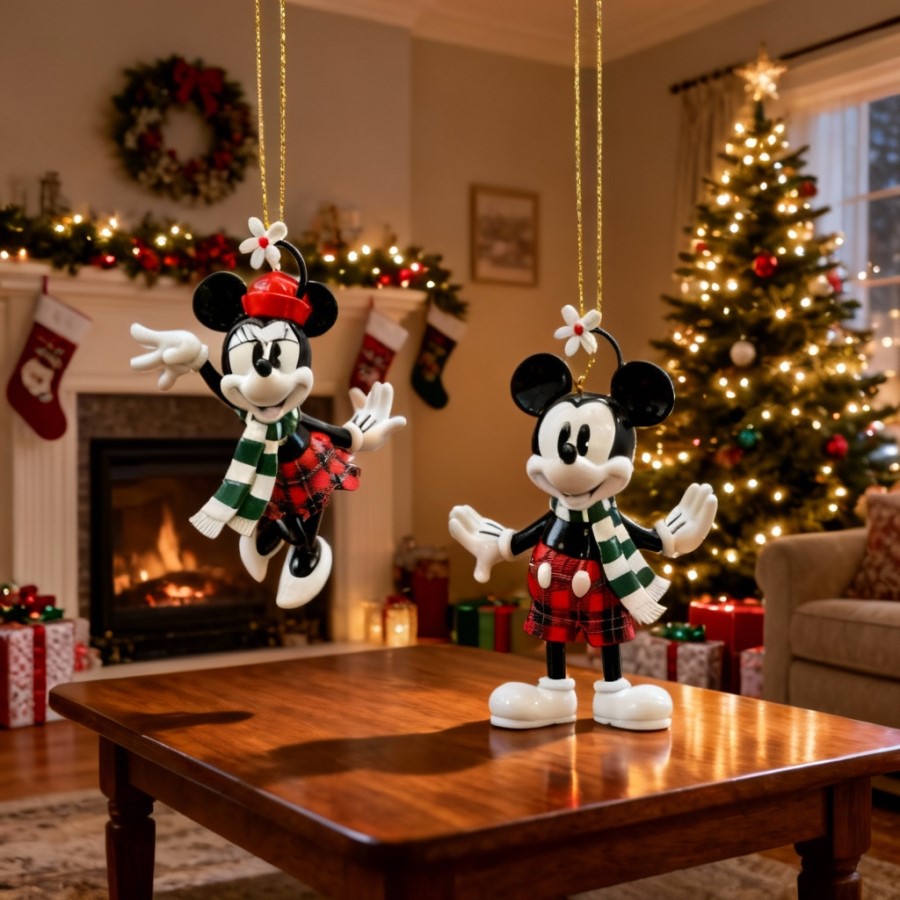 • Vintage Micky Maus Ornament mit karierten Hosen und gestreiftem Schal