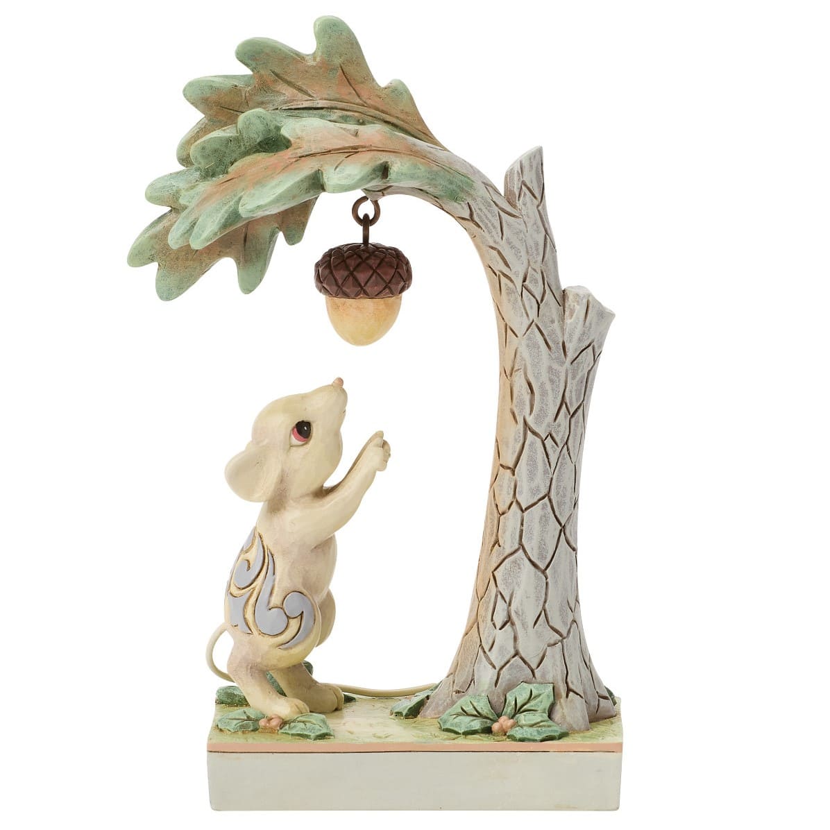 Entdecken Sie die zauberhafte Welt von Jim Shore mit dieser entzückenden Waldmaus aus der exklusiven White Woodland Collection. Die kleine Maus streckt sich neugierig nach einer Eichel aus und verkörpert perfekt die Unschuld der Natur und die Magie der Weihnachtszeit.