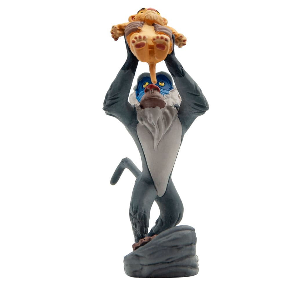 Rafiki, der weise und mystische Mandrill aus dem Disney-Klassiker „Der König der Löwen“, ist der Hüter des Wissens und der Weisheit im Geweihten Land. Mit einem feierlichen Moment, als er das kleine Löwenbaby Simba hochhält und ihm das Leben zeigt, verkörpert er eine der ikonischsten Szenen des Films. Diese detailgetreue Bullyland-Spielfigur bringt dieses kraftvolle Bild der Verantwortung und des Erbes in dein Zuhause.