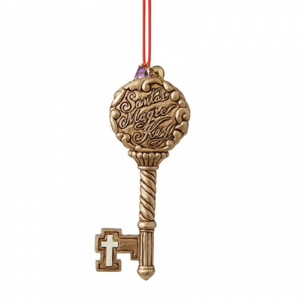 Das „Legend of Santa's Magic Key“ Ornament aus der Heartwood Creek Kollektion von Jim Shore ist ein faszinierendes Symbol für den Zauber der Weihnachtszeit. Der goldene Schlüssel, der im oberen runden Teil das Gesicht des Weihnachtsmannes zeigt, spielt eine bedeutende Rolle in einer beliebten Weihnachtslegende: Dieser magische Schlüssel ermöglicht es dem Weihnachtsmann, in jedes Zuhause zu gelangen, auch wenn keine Schornsteine vorhanden sind. Er ist das Tor zu den festlichen Geschenken und zu all der Magie, die die Weihnachtsnacht begleitet.