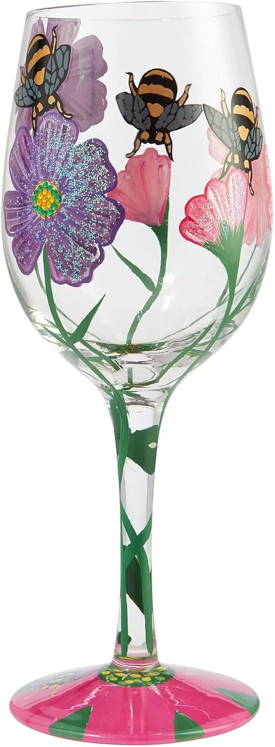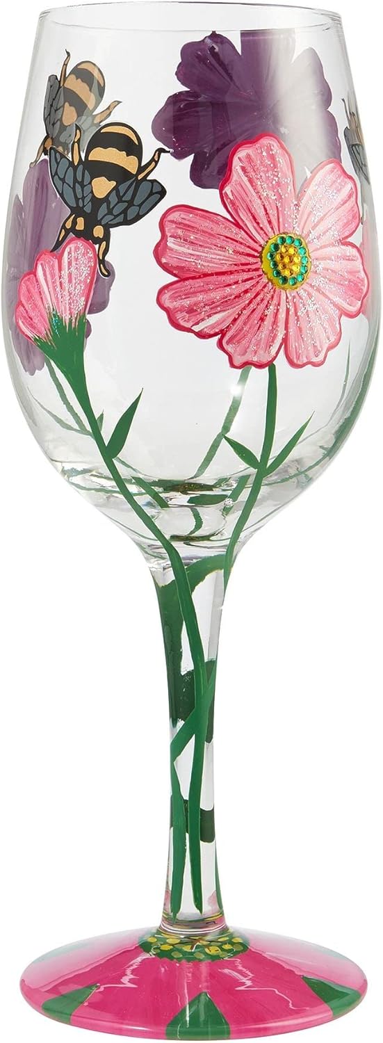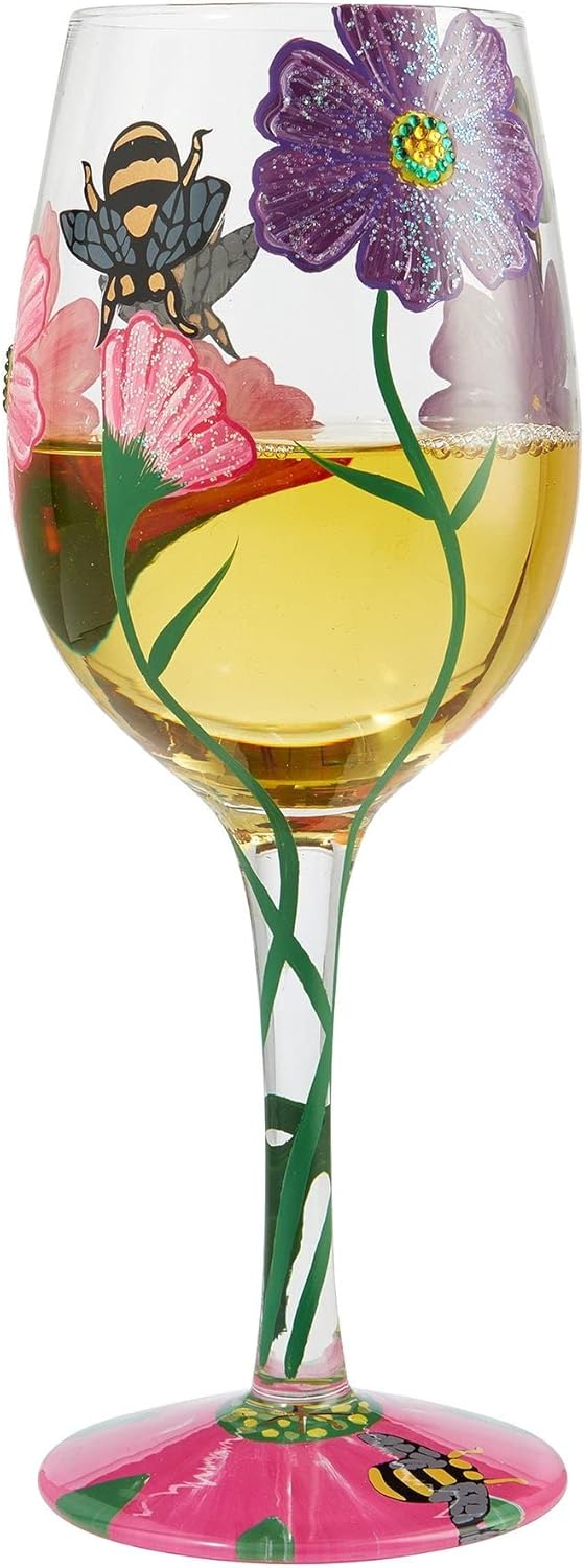 Bringen Sie ein Stück Natur auf Ihren Tisch mit dem Lolita Weinglas - My Drinking Garden. Dieses wunderschöne Glas ist von Hand bemalt und verziert mit einer zauberhaften Blumenpracht in Rosa und Lila, die von funkelndem Glitzer und kleinen Bienen begleitet wird – eine perfekte Hommage an den Frühling und die Schönheit des Gartens. Das Glas wird in einer dekorativen Geschenkschachtel geliefert - mit Weinrezept