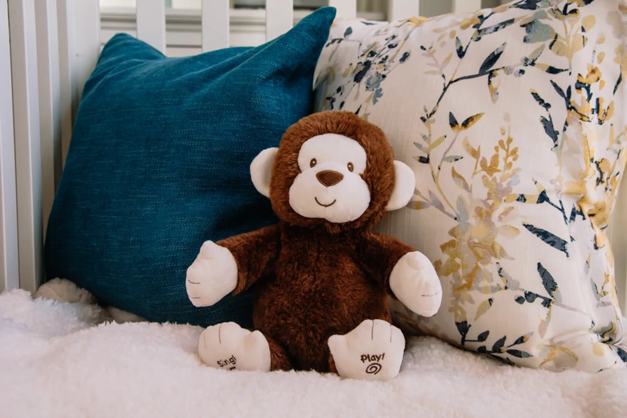 Höhe: 36 cm x 30 cm x 20 cm - Material: Stoff / Clappy ist ein begeisterter Affe mit zwei verschiedenen Spielmodi. Drücke den linken Fuß, um ein interaktives Klatschspiel zu spielen, und den rechten, um das Lied "If You're Happy and You Know It" in einer süßen Kinderstimme zu hören. Die Arme bewegen sich und klatschen während des Spiels. Clappy ist abwaschbar und für alle Altersgruppen ab 10 Jahren geeignet. Clappy benötigt drei "AA"-Batterien. Hergestellt aus weichem, anschmiegsamem Material, das den berühmten GUND-Qualitätsstandards entspricht.