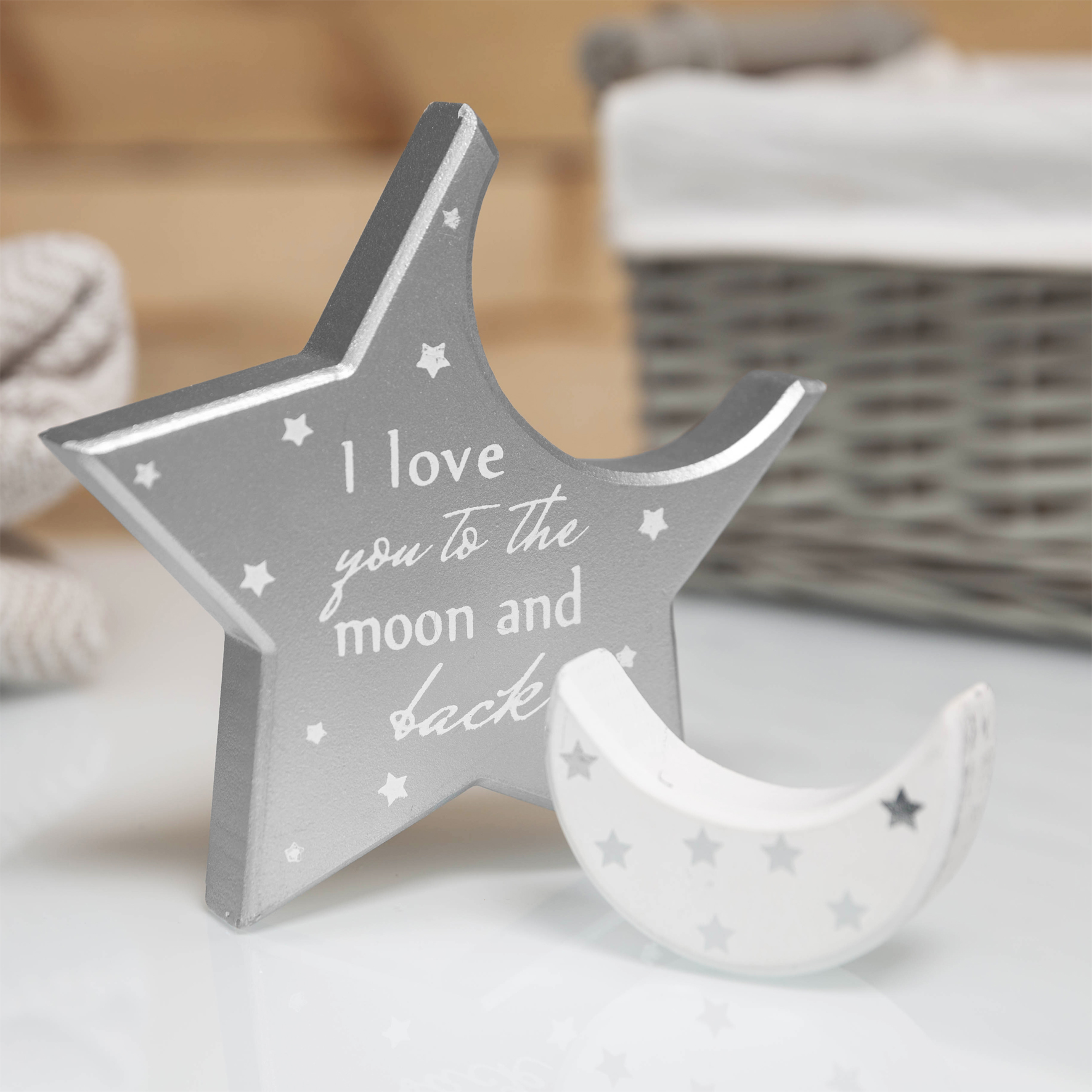 13 x 14 x 2 cm, Material: Holz - Eine wunderschöne Mond- und Sterntafel, die sich perfekt zur Dekoration eines Kinderzimmers oder Schlafzimmers eignet. Der Mond ist abnehmbar Ideal als Geschenk für frischgebackene Eltern oder zu einer Babyparty
