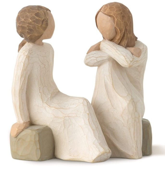 Die „Sisters by Heart“ Figur von Willow Tree, entworfen von Susan Lordi, feiert die tiefe und wertvolle Freundschaft zwischen Frauen, sei es zwischen Schwestern oder besten Freundinnen. Sie symbolisiert die besondere Verbindung von Menschen, die sich durch gegenseitiges Verständnis und Unterstützung bereichern, auch wenn sie nicht durch Blut miteinander verbunden sind. Diese Figur erinnert uns daran, dass wahre Freundschaft und Nähe keine biologischen Bande brauchen, um genauso stark und bedeutungsvoll zu sein.Design: Eine elegante, zarte Figur, die zwei Frauen zeigt, die in inniger Verbundenheit miteinander stehen und einander unterstützen. Die Geste symbolisiert Freundschaft, Vertrauen und die Bedeutung von gegenseitigem Austausch.Spruch: „Celebrating a treasured friendship of sharing and understanding“ (Feiern einer wertvollen Freundschaft des Teilens und Verstehens)..Verpackung: Geliefert in einer eleganten Geschenkbox mit passendem Geschenkanhänger.Diese Figur ist ein wunderschönes Geschenk für eine beste Freundin, Schwester oder eine andere wichtige Frau in deinem Leben. Sie eignet sich perfekt für Anlässe wie Geburtstagsfeiern, Jubiläen oder einfach, um die wertvolle Freundschaft zu würdigen, die durch Vertrauen und gemeinsames Verständnis gewachsen ist. „Sisters by Heart“ ist ein schönes Symbol für die Bedeutung von tiefen, unterstützenden Beziehungen, die unser Leben bereichern.
