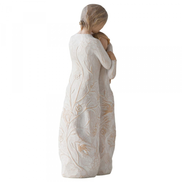 Die Close to Me Figur von Willow Tree, entworfen von Susan Lordi, fängt die emotionale Verbindung zwischen Mutter und Tochter ein, die über alle Phasen des Lebens hinweg bestehen bleibt. Egal, ob es sich um den Moment handelt, wenn ein Kind zum ersten Mal in ein Sommerlager geht oder eine Tochter zum College zieht – die Botschaft dieser Figur bleibt immer dieselbe: Unabhängig von der Entfernung, die zwischen ihnen liegt, sind Mutter und Tochter immer miteinander verbunden. „Das sentimentale Thema dieser Figur lässt sich auf jedes Alter anwenden... ein Kind, das ins Sommerlager geht, ein Teenager, der für das College wegzieht... Die Botschaft ist immer dieselbe. Die ineinander verwobenen Bilder auf den Kleidern der Figuren spiegeln visuell dieses Gefühl wider. Ich verstehe dieses Stück von beiden Seiten – als Tochter und als Mutter, die eine Tochter bis zum Erwachsenwerden begleitet hat. Ich hoffe, sowohl Mütter als auch Töchter werden die Emotionen dieser Figur nachempfinden.“ – Susan Lordi